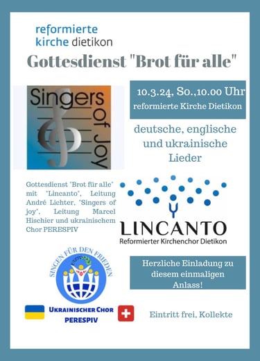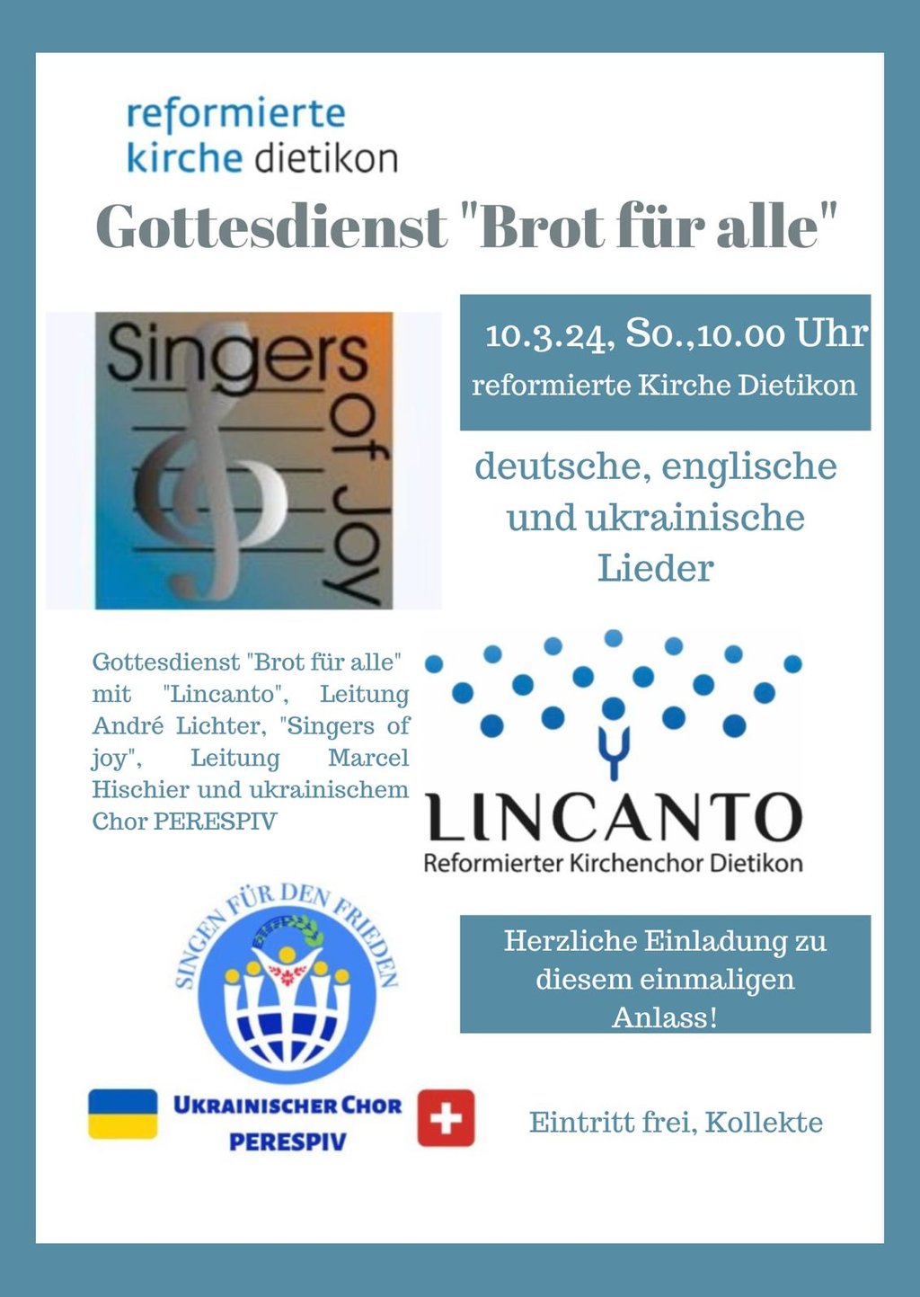 Am Sonntag 10.03.2024 um 10-00 Uhr. Reformierte Kirche Dietikon.