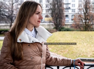 Ende Februar 2022 fallen russische Truppen in Evgenias Heimatstadt Butscha ein. Zwei Wochen lang lebt sie ohne Strom, Wasser und Heizung. Die damals 63-Jährige flieht mit ihrem Mann zu Fuss nach Irpin – währenddessen wird Butscha zum Schauplatz eines der schlimmsten Massaker an der ukrainischen Bevölkerung. Über Kiew, Lwiw und schliesslich über Polen und Deutschland gelangen sie in die Schweiz.