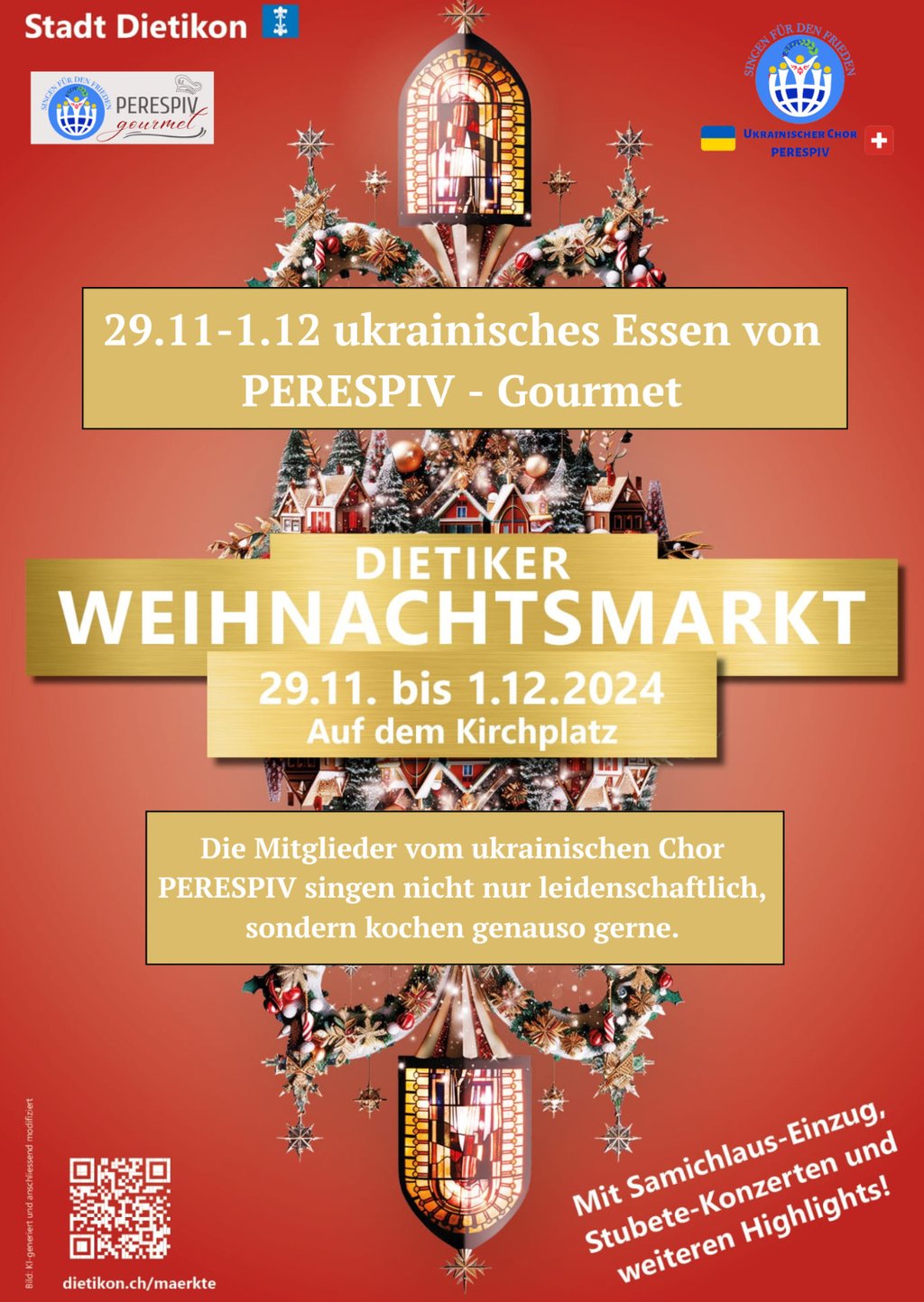 Dietikon von 29.11 bis 1.12.2024 auf dem Kirchplatz. Auftritt von PERESPIV am 30.11 um 14.00 Uhr